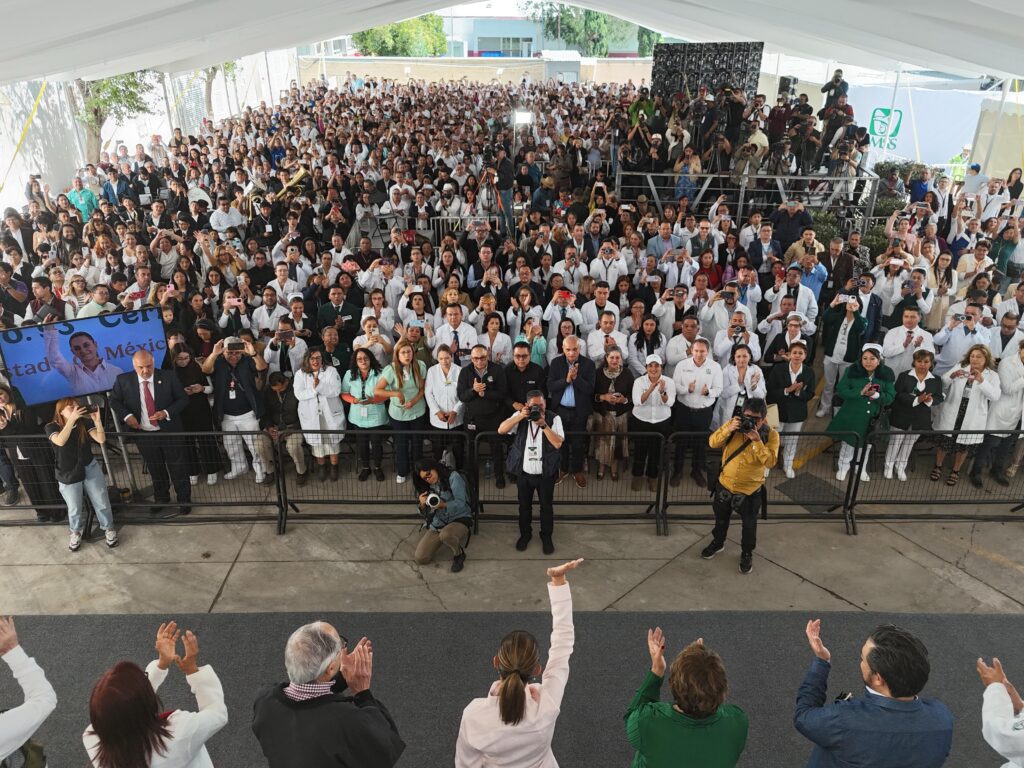 “Somos persistentes, necias y necios en que el sistema de salud pública debe convertirse en el mejor de todo el país, y lo vamos a lograr gracias a ustedes: médicos y médicas del Seguro Social, del ISSSTE y del IMSS Bienestar, que siempre dan su vida por atender a los demás, como lo demostraron durante la pandemia”, afirmó.