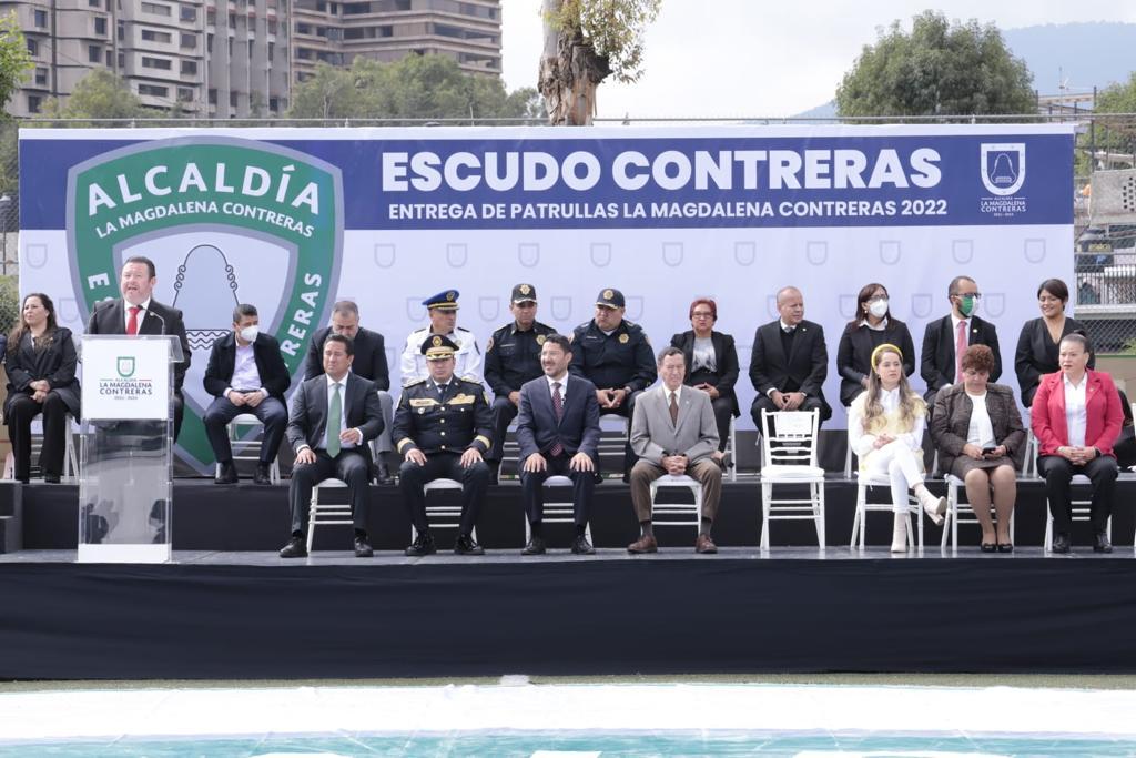 En el evento al que asistió el secretario de Gobierno, Martí Batres, en representación de la jefa de Gobierno, Claudia Sheinbaum, el alcalde Luis Gerardo Quijano subrayó que con las 45 patrullas nuevas “Escudo Contreras” tendrá un estado de fuerza de 68 vehículos y 340 elementos de seguridad.