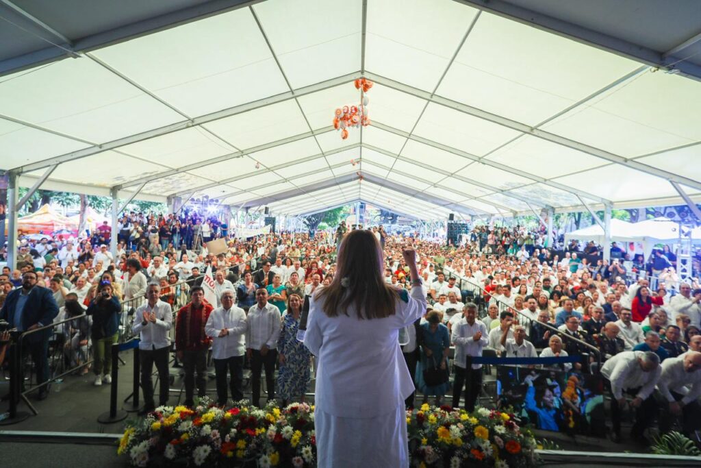 Acompañada por el secretario de Agricultura y Desarrollo Rural, Julio Berdegué Sacristán, representante presidencial, la mandataria destacó que su gobierno ha privilegiado el trabajo en territorio y la cercanía con la ciudadanía para informar de manera directa sobre los avances obtenidos.