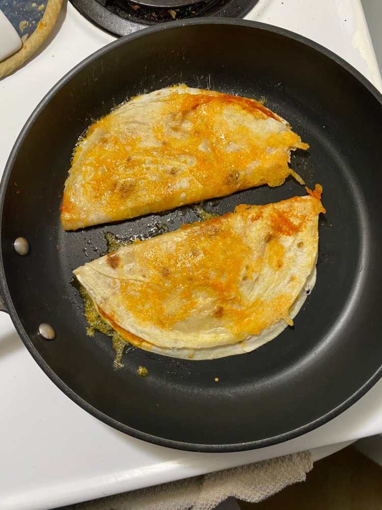 “Doblas la tortilla y si gustas, puedes ponerle una hoja de epazote dentro para darle un toque de sabor, aunque no es forzoso. Les pones sobre el sartén, le das un par de vueltas y en cuanto veas que el queso gratinó, las retiras”, dijo la licenciada en gastronomía.