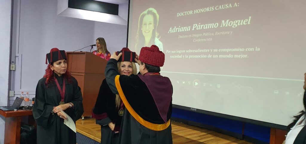 En el auditorio de la CANACO de la Ciudad de México, el rector de la Universidad Santander, Dr. Enrique Javier Navarro Flores, dijo que este Doctorado Honoris Causa es con grado académico, ya que al ser otorgado por una institución educativa que selecciono los currículos de las galardonas tiene una real validez.