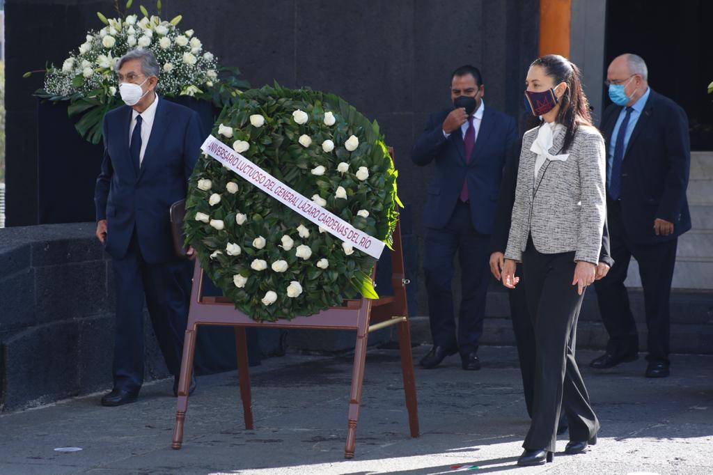 En el mausoleo del Monumento a la Revolución, donde están los restos de Cárdenas del Río, la mandataria capitalina realizó una guardia de honor frente a la ofrenda floral que colocaron las autoridades del Gobierno federal para conmemorar el fallecimiento ocurrido el 19 de octubre de 1970.