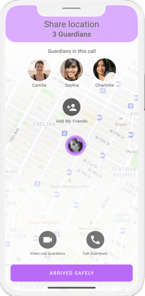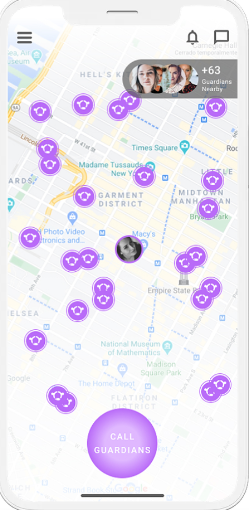 “Ofrecemos un despliegue muy amplio de todas las guardianas en su área”, dice Toder. “Podemos conectar a las usuarias muy rápido con alguien que pueda acudir a usted y ayudarla a sentirse más segura”.
